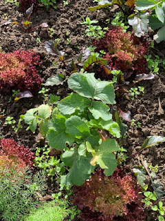 En el mismo caballón se siembra remolacha. Se pesan 28 remolachas con una masa de 89 g, con un media de 3,17 g y se plantan 44 remolachas entre las lechugas y rábanos.