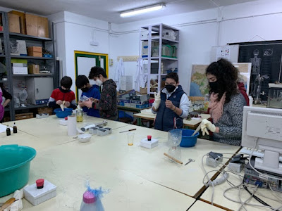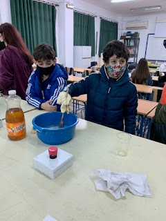 The students of 1st ESO are going to reuse cooking oil to make soap. We start with a theoretical lesson on the chemical reaction of saponification that will take place, in which a sodium salt will be produced, which is the homemade soap we are going to get.