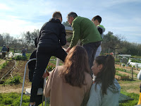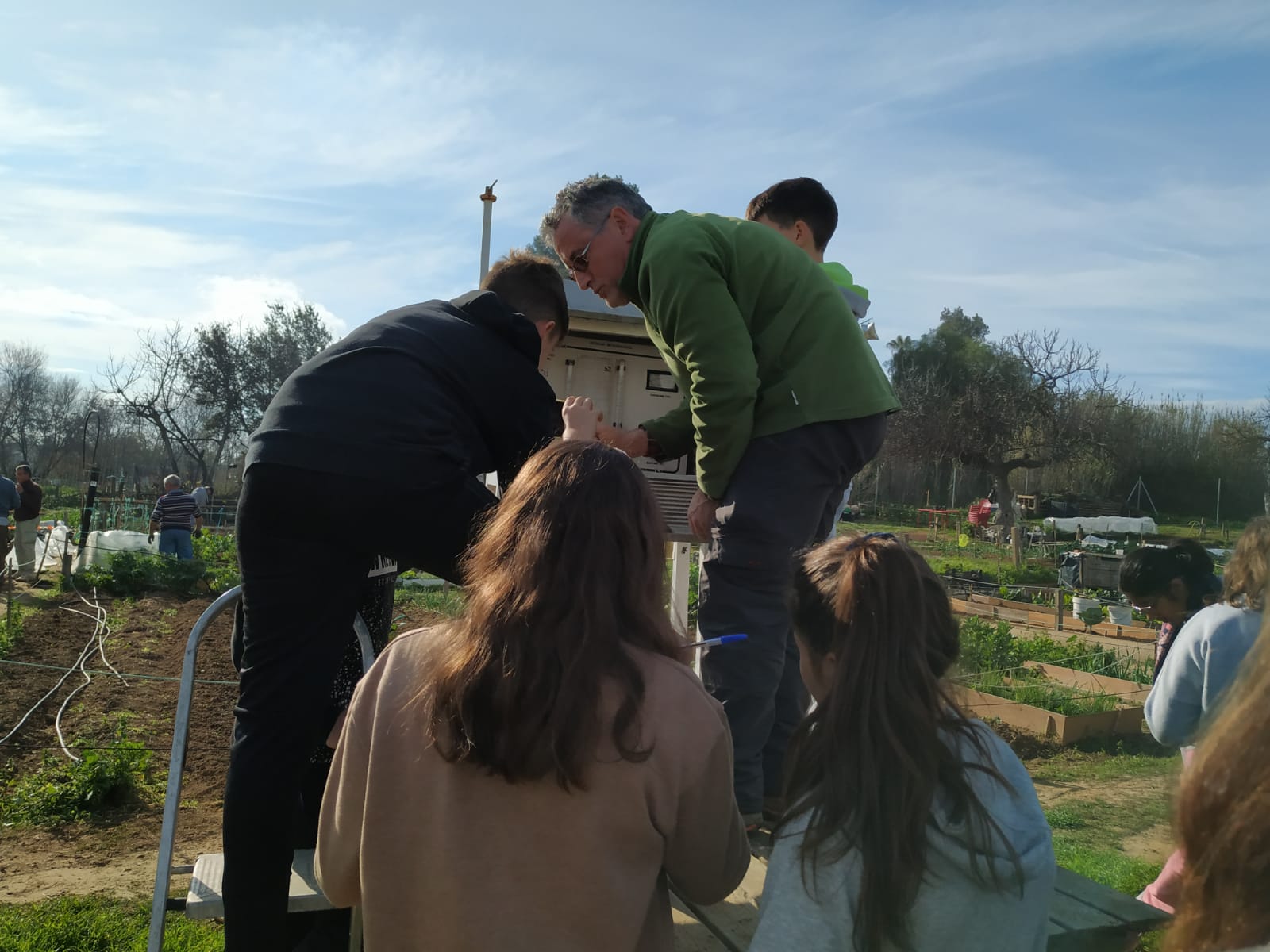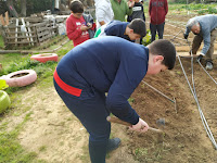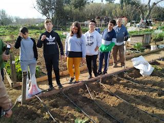 Y ahora hay que plantar patatas, primero se pesan: 4,335 Kg, que hay que controlar la biomasa para ver la productividad y poder hacer el estudio de fijación de CO2 en materia orgánica por las plantas.