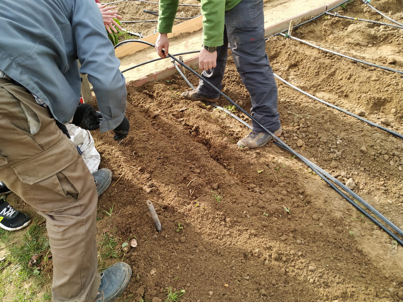 Una vez pesada se prepara el terreno, se siembra, se  abona y se cubren para después poner el sistema de riego: